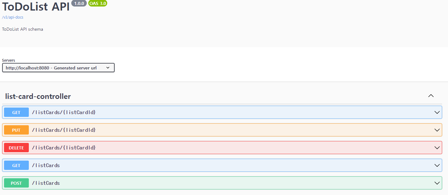 API작성은 swagger를 통해 작성한 API명세를 확인할 수 있는데, http://localhost:8080/swagger-ui/index.html 이 url을 접속하면 확인할 수 있다.