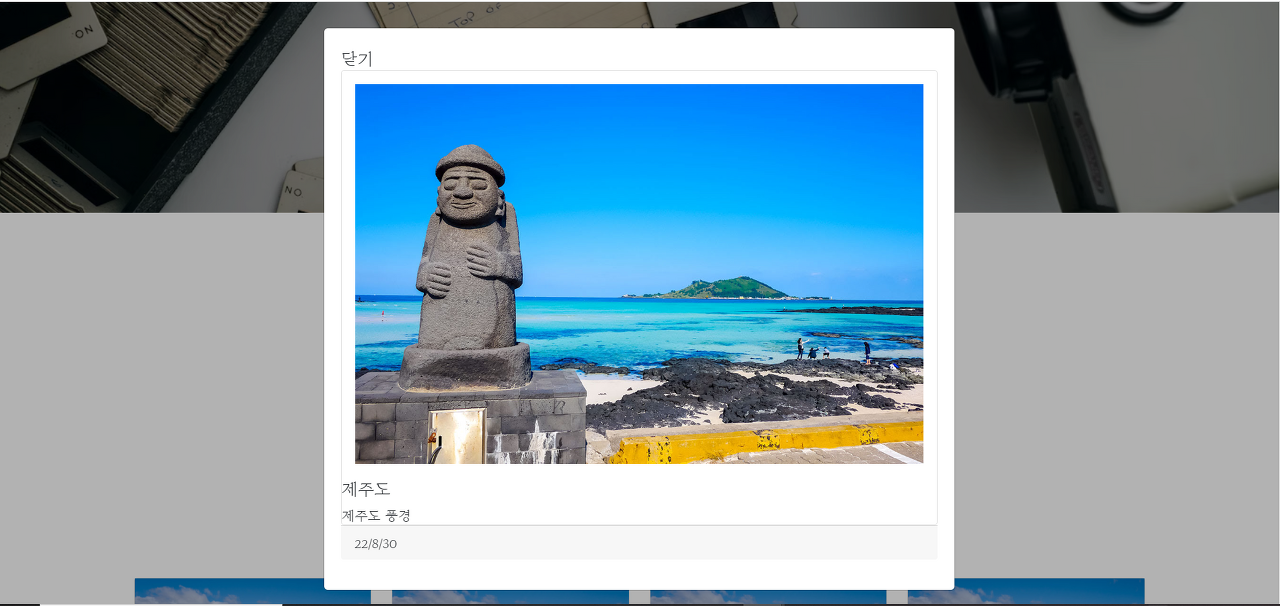(제주도 사진을 추가하고 클릭 시 팝업창이 뜨는 모습)